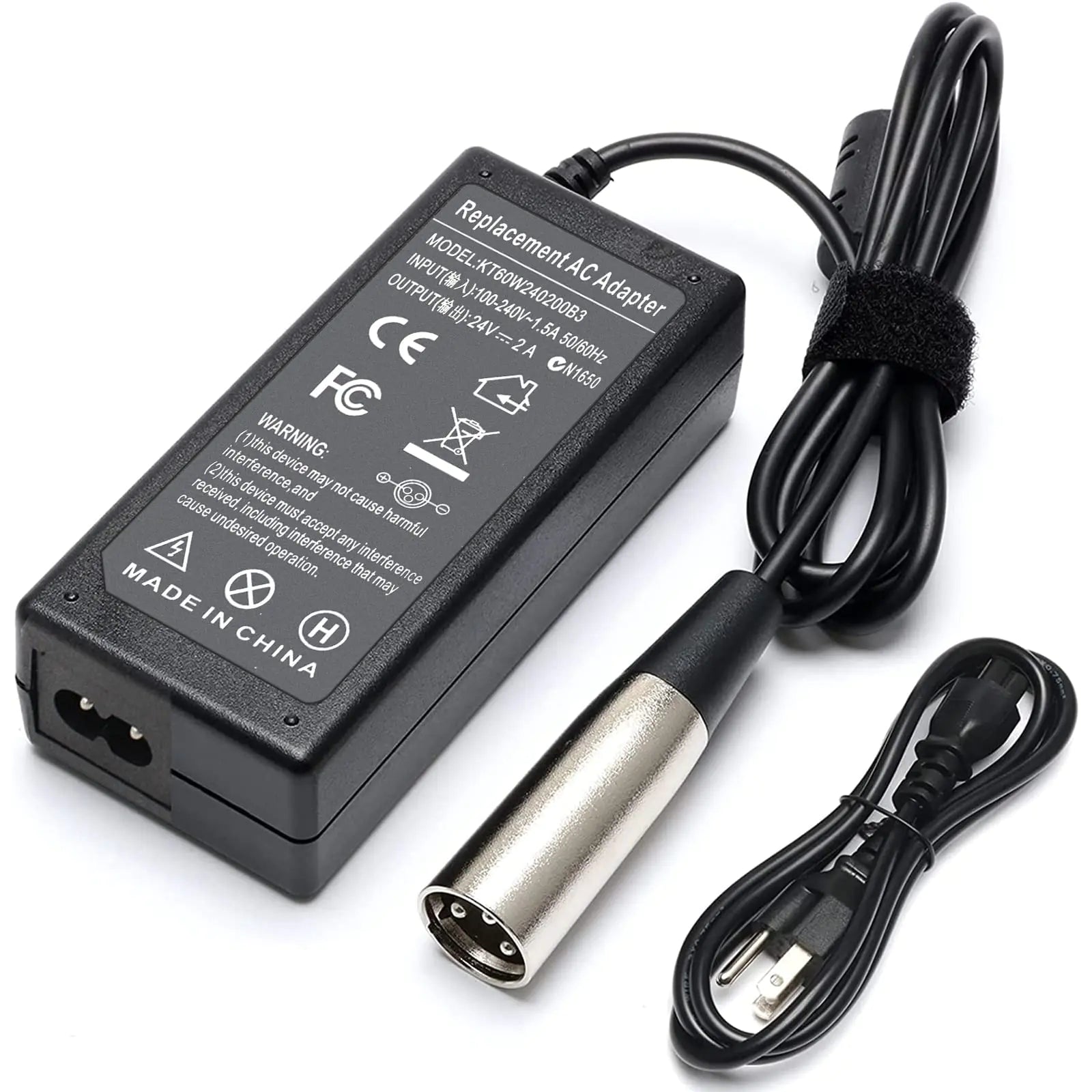[[ 24V 2A Electric Scooter Charger ] - Output: DC 24V 2A Input: AC 100-240V 1.5A 50/60Hz Connector Tip: Male 3-Pin XLR (Please refer to the picture) Condition: 100% New from Manufacturer. Package includes: 1x 24v 2a Scooter Charger & 1x AC Power Cable & 1x User Manual. [ Compatibility of 24V 2A Battery Charger ] - Ftenlyen High quality 24V 2A Electric Scooter Battery Charger is widely compatible with most brands of electric scooters including Vive 4 Wheel Mobility Scooter handicap scooter powerchair Pride Mobility Scooter Drive Scout 4 scooter Go Go Ultra Scooter Pride Go Go scooter Pride Go Chair motorized scooter Pride Mobility Jazzy power chair Spirit 3 scooter Shoprider Mobility Scooter wheelchair Jazzy Power Chair Pride Mobility Shopride Drive Medical and Golden Technologies. "Compatible for GoGo Elite traveller battery charger Go-Go Elite Traveller SC40E/SC44E Gogo Scooter Charger Go-Go Elite Traveller Plus HD US eZip Mountain Trailz Bicycle eZip Trailz Men/Women Bicycle eZip Trailz Womens Bicycle eZip Trailz Electric Bike eZip 400 500 E500 750 E750 900 E400 450 650 Scooter eZip 4.0 4.5 E-4.5 Scooter Schwinn Bladez Schwinn S300 S350 S650 S400 S500 schwinn scooter charger and Mountain Trailz pride scooter charger" Compatible for Jazzy Power Chair Pride Mobility scooter charger Pride Mobility Shopride Drive Medical Golden Technologies Elite Traveller Travel Mobility Scooters Buzzaround Series Golden Wheelchairs Shoprider Currie e-ride MISSILE FS NEW FRONTIER X-CEL Zone 5 Bladez Currie Bladez XTR Street Comp IZIP CHOPPER electric Scooter IZIP CHOPPER I-200 I250 I300 I350 I500 Electric Scooter GT ASTEROID GT200 GT250 GT300 GT350 GT500 LASHOUT 400W 600W Electric Bike and more [ User-friendly Design ] - Our Upgraded 24V 2A Scooter Battery Charger is equipped with a small indicator to warmly remind you of the charging status. Built-in IC chip technology provides overload/short circuit/overheat protection without worrying about damage to your devices. The oxygen-free copper power cord keeps lower power consumption while the smart control chip ensures that charging is as fast as the original power source.]